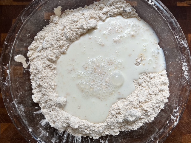 - Add the buttermilk and stir until just combined. The dough will be pretty sticky.