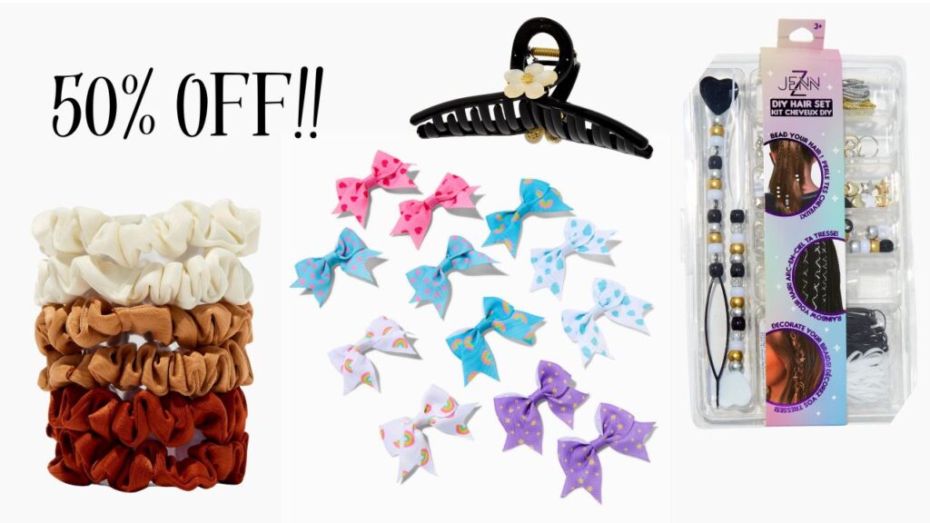 Shop at Claire’s to snag some new hair accessories for the school year! Get 50% off hair bows, clips, pins and ties!
