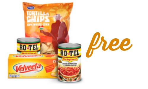 - Add (2) cans Rotel Diced Tomatoes (10oz each), Velveeta Loaf (2lbs) and a bag of Kroger or Fred Meyer Tortilla Chips (9.75-10oz) to your ClickList cart
