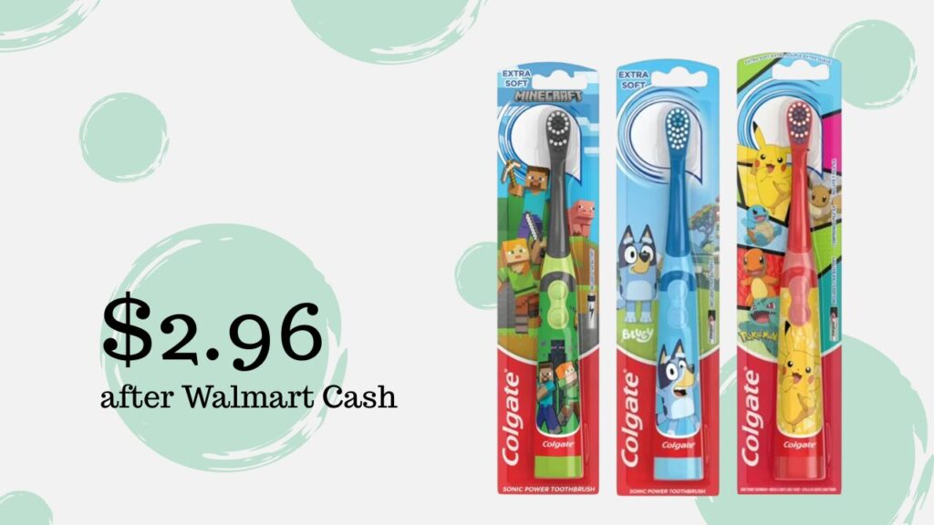 Head to Walmart to grab each of the kids new Colgate Battery Powered Character Toothbrushes for under $3 after Walmart Cash Back.
