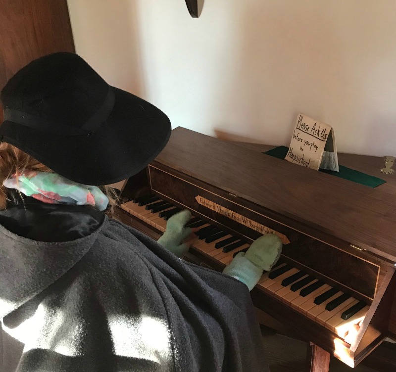 Visiting the cabinet maker we found a harpsichord that guests could play! Piano lessons paid off.