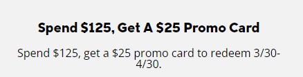Plus, if you spend $125, you’ll earn an additional $25 promo card to spend in April!
