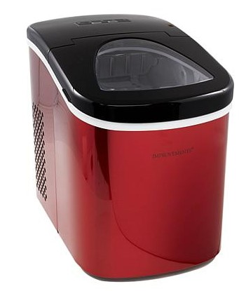 This Improvements ice maker comes in three different colors. It produces small or large ice cubes in less than 7 minutes and can produce 26 lbs. of ice per day.