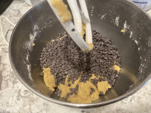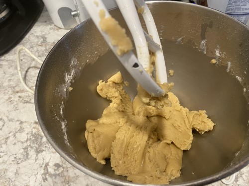 - Add flour, cornstarch, baking soda, and salt and mix until combined.