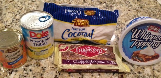 - 2 cans Mandarian Oranges, 11 oz, drained