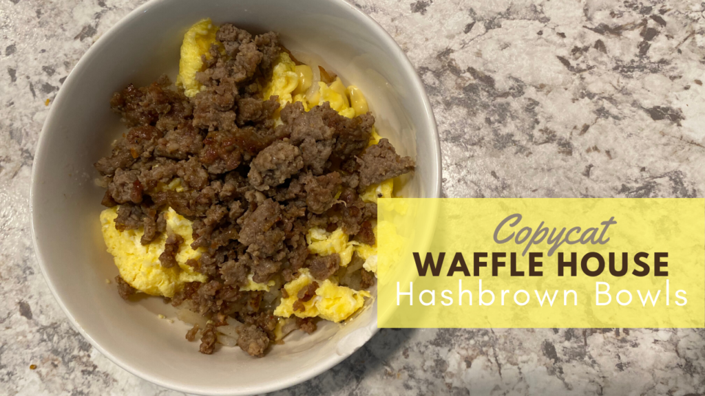Eating out with a large family is expensive, so we love finding shortcuts to enjoy our favorite restaurant foods at home. Waffle House is one of our favorite places to go, and their hashbrown bowls are a family favorite. They’re basically all the best foods of Waffle House in one thing—hashbrowns, cheese, eggs, and sausage.