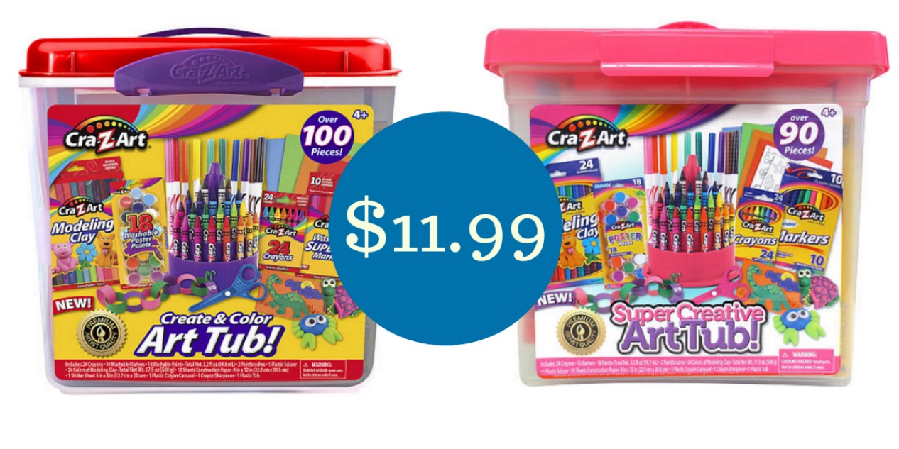 These craft tubs are regularly $19.99 and each contains over 90 pieces including crayons, markers, scissors, paint, modeling clay and more!