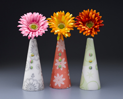 For easy spring decor, you can make the cute daisy cones above with Styrofoam, silk flowers and scrapbook paper.