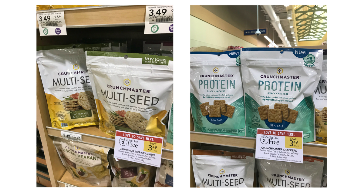 - Crunchmaster Snack Crackers, 3.54-4.5 oz, B2G1 at $3.49