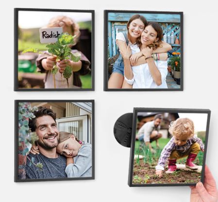 Wall tiles are repositionable, no nails required, and photos can be changed out easily. Plus, these make great gifts for all the family or a super-frugal and personalized statement wall!!