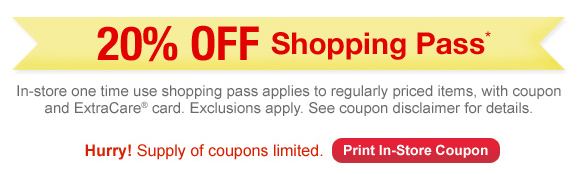 CVS has a great daily deal coupon for 20% off your entire purchase! The coupon is valid on full price items only.