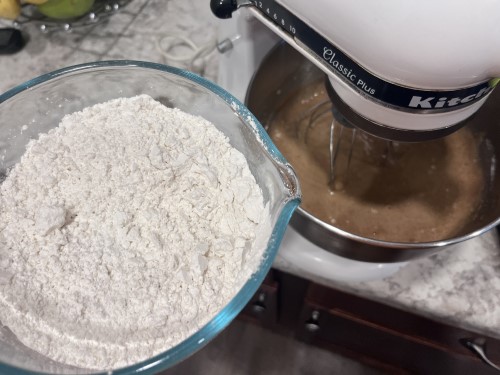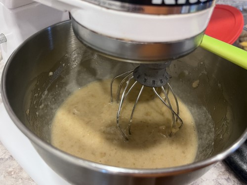 Mix up the bananas, eggs, and vanilla with your stand mixer.