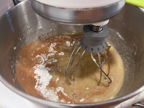 Add in the baking soda, baking powder, salt, and cinnamon.