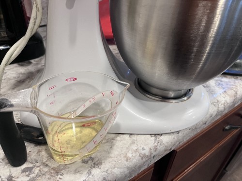 Add in your oil/fat. I used 1/4 cup vegetable oil. You can also use coconut oil or applesauce as long as it’s not butter!