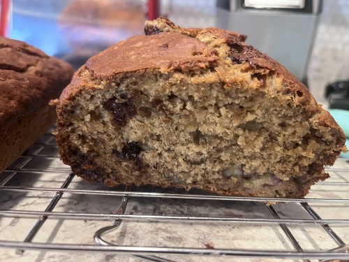 I didn’t have dairy free chocolate chips, so I put half the batter in one loaf pan and then added my regular chocolate chips to the other pan for my family to eat.