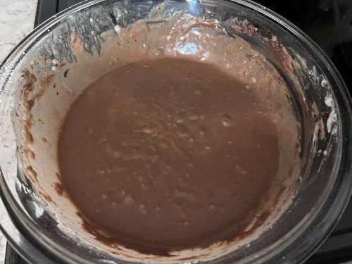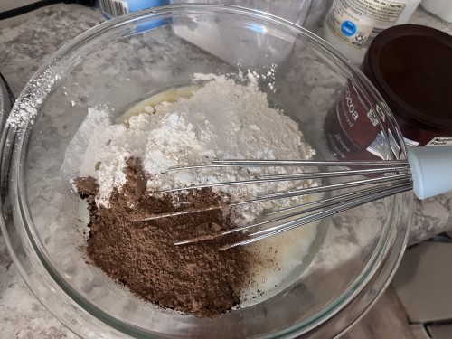- Add the dry ingredients and use a spatula to stir until just mixed.