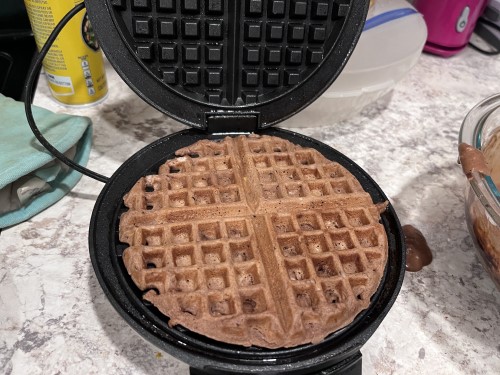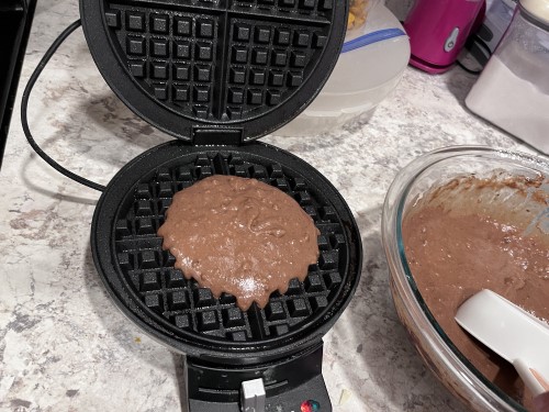 - Put about 3/4 cup batter in the waffle iron (depending on the size).