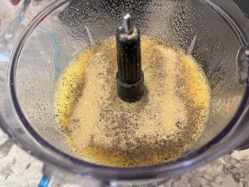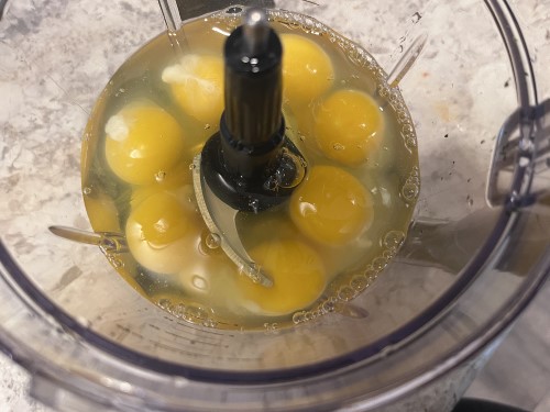 Then whisk together your eggs or do it in a food processor or blender. I like the blender because it makes the eggs really creamy, since you’re not using any milk.