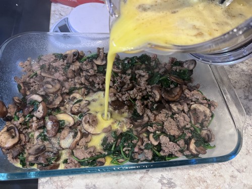 - Pour the egg mixture over the top.