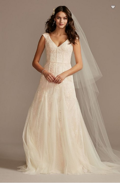 Cap Sleeve Dot Trim Point D’Esprit Wedding Dress – $699.99 (reg. $999)
