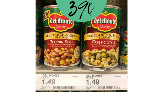 This week at Target, get a great deal on Del Monte Vegetable & Bean Blends. Stack a high value Cartwheel with a manufacturer coupon and pay only 39¢ per can!