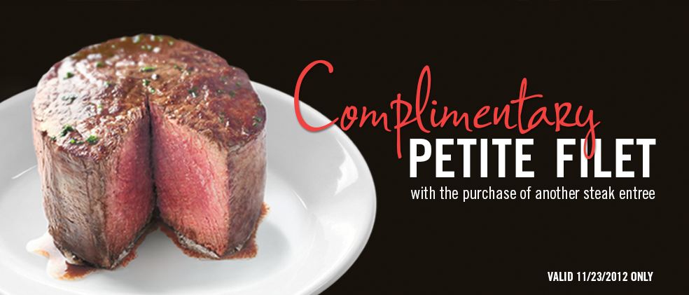 Ruth Chris’ – BOGO Petite Filet (valid 11/23 only, 2 per table)