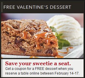 Ruby Tuesday – Make a reservation for 2/14-2/17 and get a Free Dessert Coupon