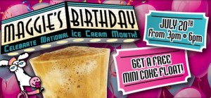 On Wednesday, July 20th, Maggie Moo’s is celebrating National Ice Cream Month! I didn’t know that existed, but I will never complain about free treats. Head into your nearest location between 3-6 PM to get your FREE mini coke float. Enjoy!