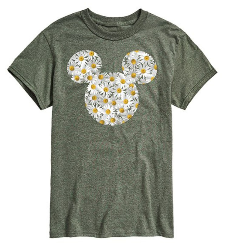 Heather Military Green Mickey Mouse Head Daisies Tee – $19.99