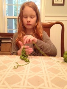 My oldest girls love making crafts. One of them even has the goal of knitting all of her Christmas gifts. So, I thought finger knitting would be a fun craft to do together.