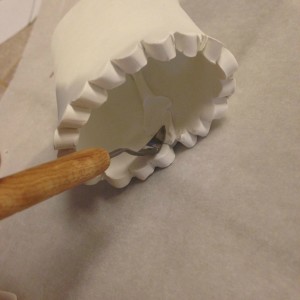 3.  Use your craft knife to cut the form of the design.  I did a scalloped top, but you can make anything you want.  A box, a plain cylinder, a mini house and more!