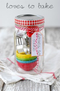 For these gifts, just grab small gifts (you can usually find tons of things at the dollar store) and fill a mason jar with those treats that match your recipients’ personalities. The opportunities are endless!