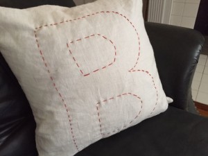 For the next DIY I decided to make a monogram pillow. It was so easy to make and too me less than an hour. I had some pillow cases that I bought at Ikea and I wanted to spice them up a little. This tutorial looks “charming.” It’s definitely not perfect, but I love the well-loved look of this pillow for a nursery or kid’s room.