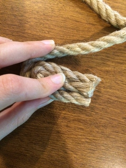 Start with gluing a folded over piece of rope. Hold it together until it’s dry enough to stay together.