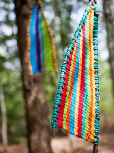 Parents came up with a fun and whimsical tutorial for tree tapestry. Find a sturdy y-shaped branch and create the foundation for your weaving (warp). Next you’ll create the weft which is the yarn that you thread through the warp. Thread a long strand of yarn through a plastic needle and start weaving in and out of the warp. Once one piece of yarn is used up, tie another piece to the end and continue on. These would be so fun a markers along a nature walk, or just spread throughout the yard!