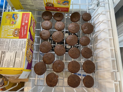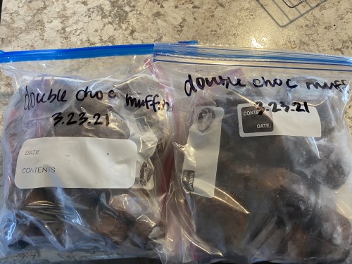 When the muffins are totally cooled off, put the rack straight in the freezer to flash freeze so they won’t stick together when you freeze them.
