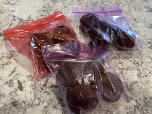 I like putting 4-5 in tiny snack bags so my kids can grab one for a snack. Then I put the smaller bags in a large freezer bag.