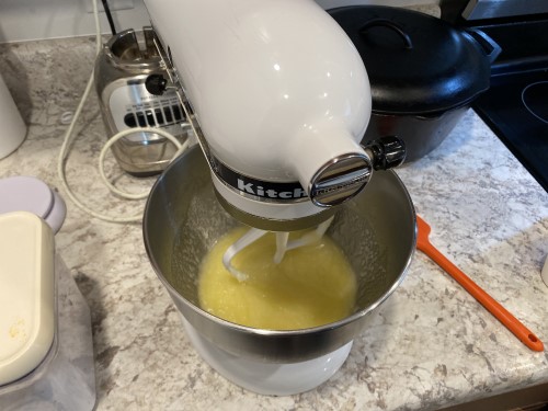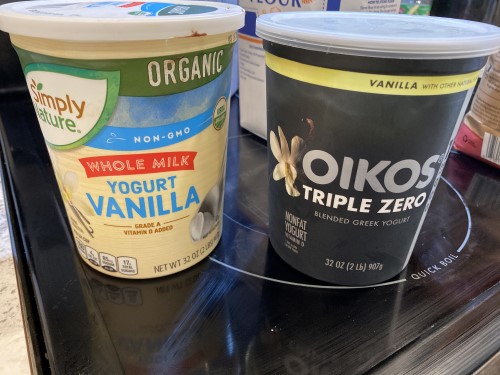 Now it’s time to add the yogurt. This recipe is great because you can use any yogurt you have! I had organic whole milk vanilla yogurt and lowfat vanilla Greek yogurt, so I used a combination of both.