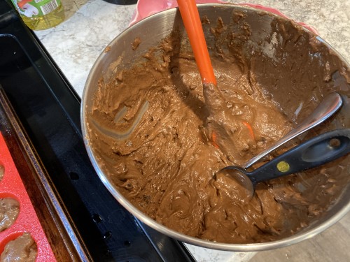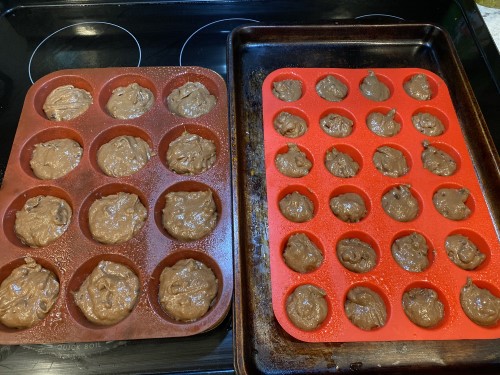 - Spray any size muffin tins with cooking spray and fill 2/3 full with batter.