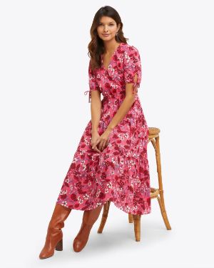 Faux Wrap Dress in Raspberry Clematis Floral – $89 (reg. $165)