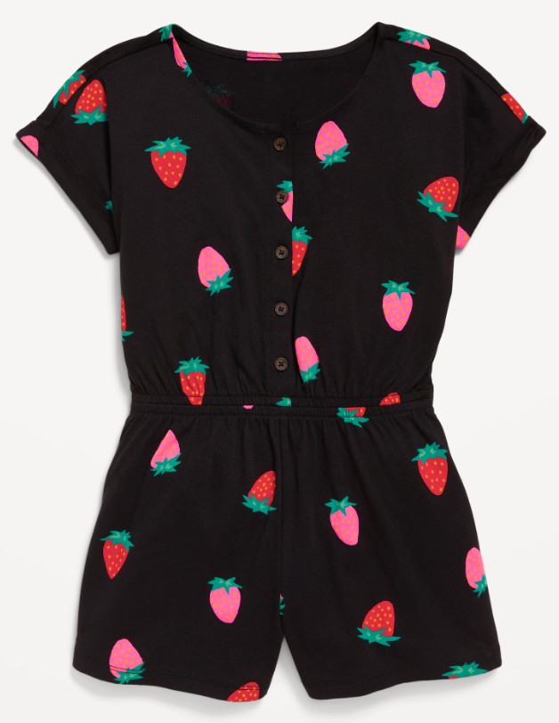 Printed Short-Sleeve Button-Front Romper for Girls – $8 (reg. $20)
