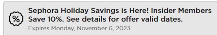 Through November 6th, Beauty Insiders will find a coupon in your wallet for 10% off with code TIMETOSAVE at checkout. VIB status members will get 15% off and Rouge status members will get 20% off!