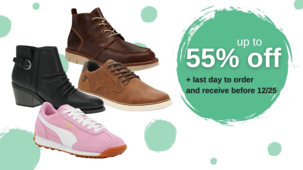 Here is a DSW shoe sale you don’t want to miss! Order today to make sure they arrive by Christmas! Combine sale prices with a code to score up to 55% off top brands!