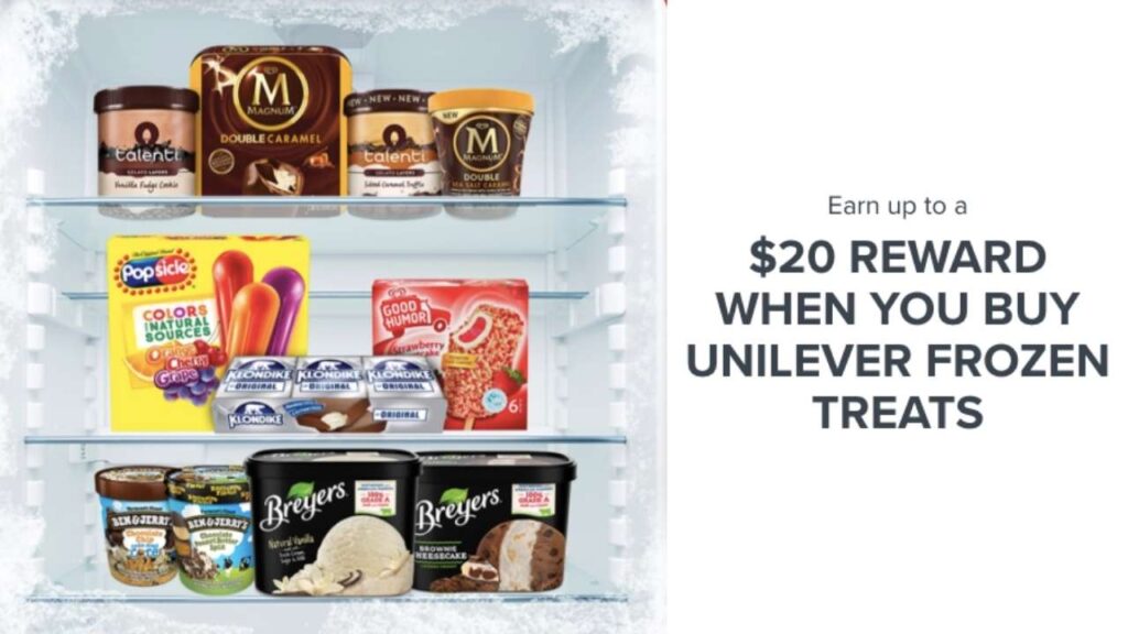– Earn up to a $20 REWARD when you buy Unilever Ice Cream Treats