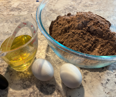 Then you’ll need 1/2 cup of oil and 2 eggs (ignore the recipe on the back of the cake mix).