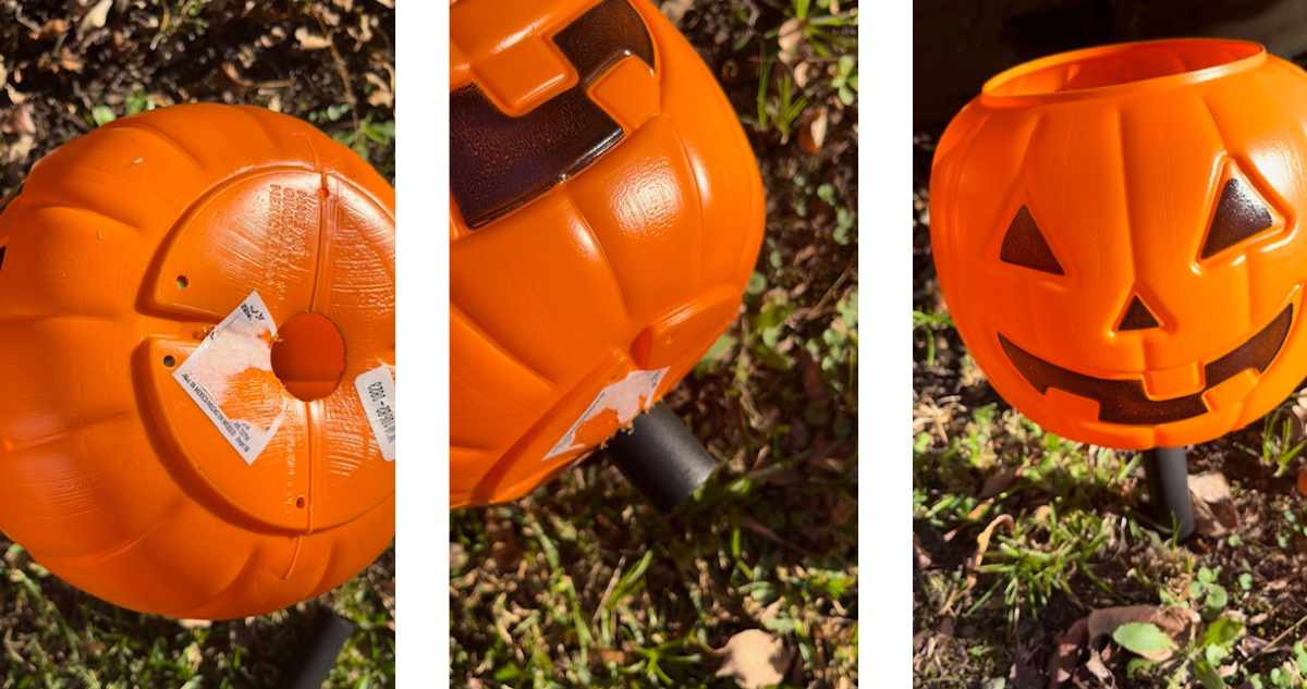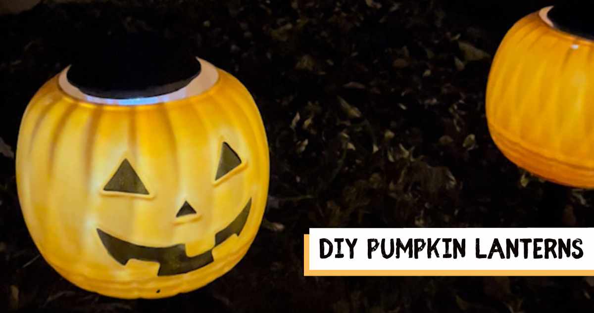 Get your yard looking festive this year with some super easy DIY pumpkin lanterns! You’ll just need to grab pumpkin pails and solar lights.