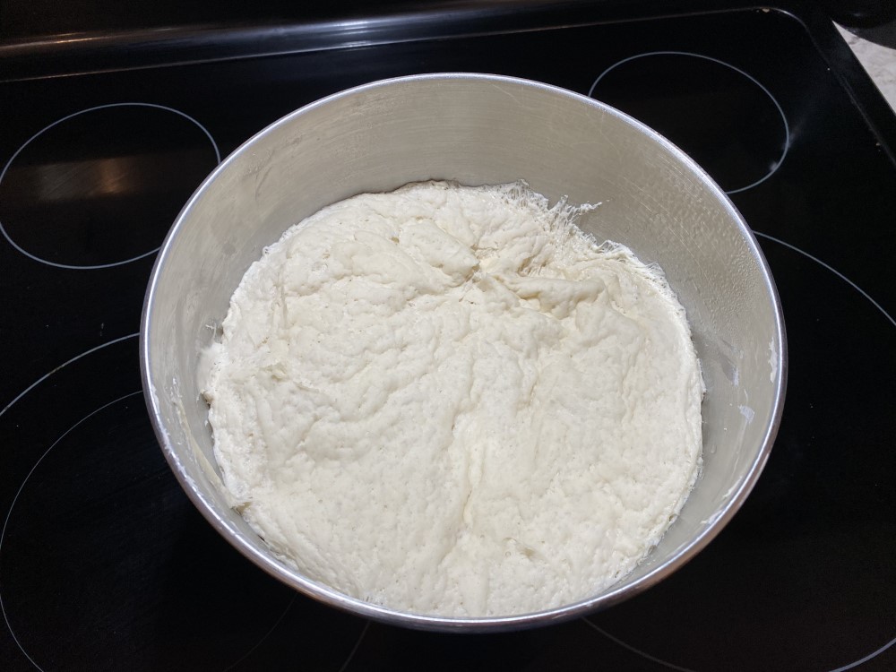 When I make pizza bread, I basically double a normal pizza recipe. The first step is to prepare the pizza dough according to whatever recipe you’re using. If you’re using pre-made dough from the store, you’re good, but if you’re making it from scratch, you’ll probably have to plan ahead! I used my recipe for pizza dough and doubled it so I would have enough for the equivalent of two pizzas.
