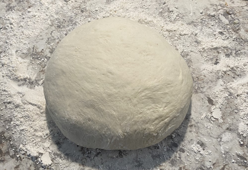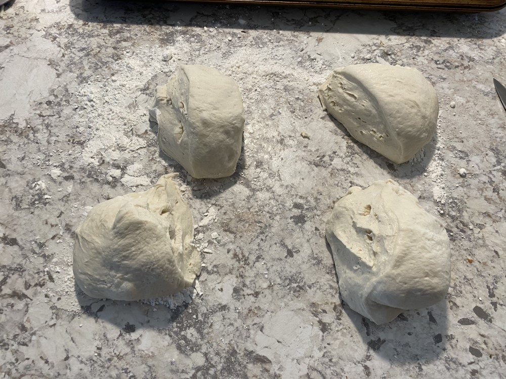 Roll the dough out onto the counter and shape it into a ball. You want to divide it into 4 mostly equal pieces.