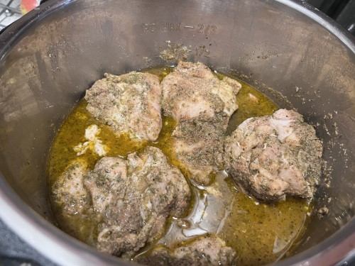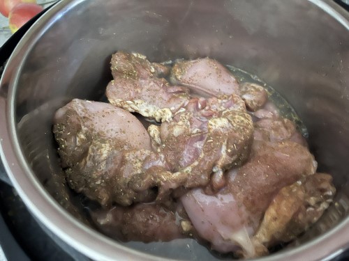 - Place the chicken in the bottom of your the Instant Pot.