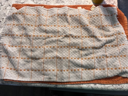 Then I cover them with another towel and move it around to try to remove as much moisture as possible.